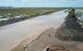 Reportes de Protección Civil señalan que, en la parte final del dren, rumbo al estero de Santa María, existen 1,956 metros totalmente bloqueados por sedimentos, basura y crecimiento de manglar. En esa zona, donde la profundidad debería ser de entre 2.5 y 3 metros, el nivel apenas llega a 30 centímetros, provocando que el agua retroceda hacia áreas agrícolas y urbanas.