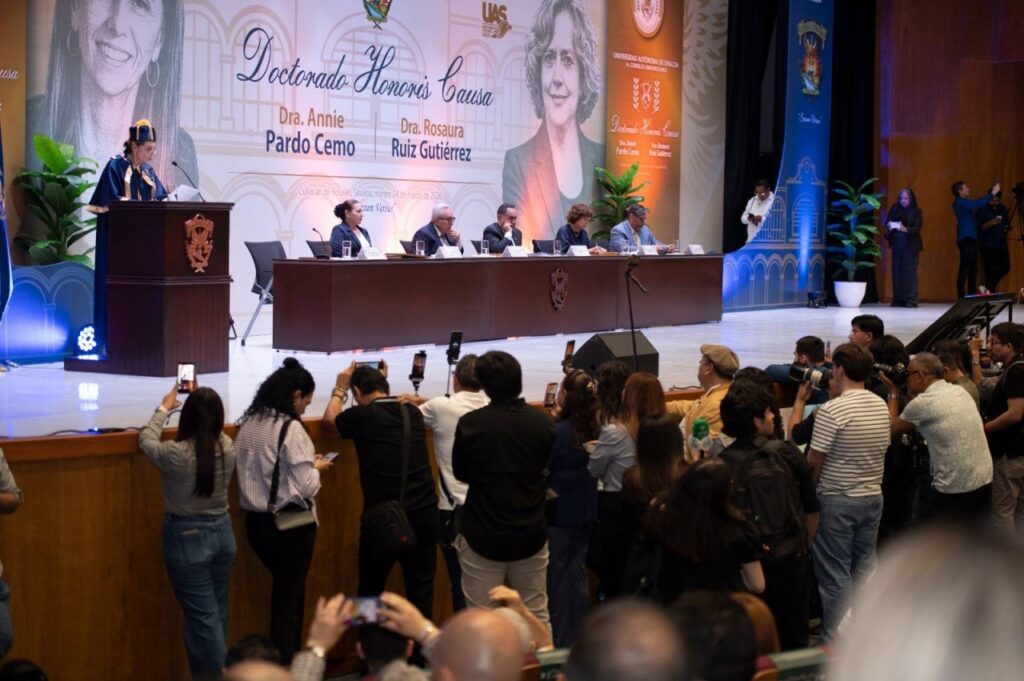 La Universidad Autónoma de Sinaloa (UAS) se vistió de gala y, en un marco de celebración sin precedentes, entregó su más alto reconocimiento: el Doctorado Honoris Causa a la Doctora Annie Pardo Cemo y a la Doctora Rosaura Ruiz Gutiérrez, dos mexicanas sobresalientes por su inteligencia e inspiradoras por su tenacidad, liderazgo y calidad moral.